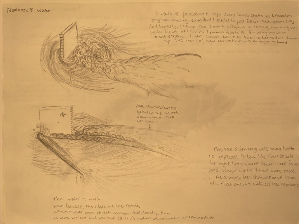 To promote thinking like Leonardo, we kept notebooks as part of the class. There were three types of entries: